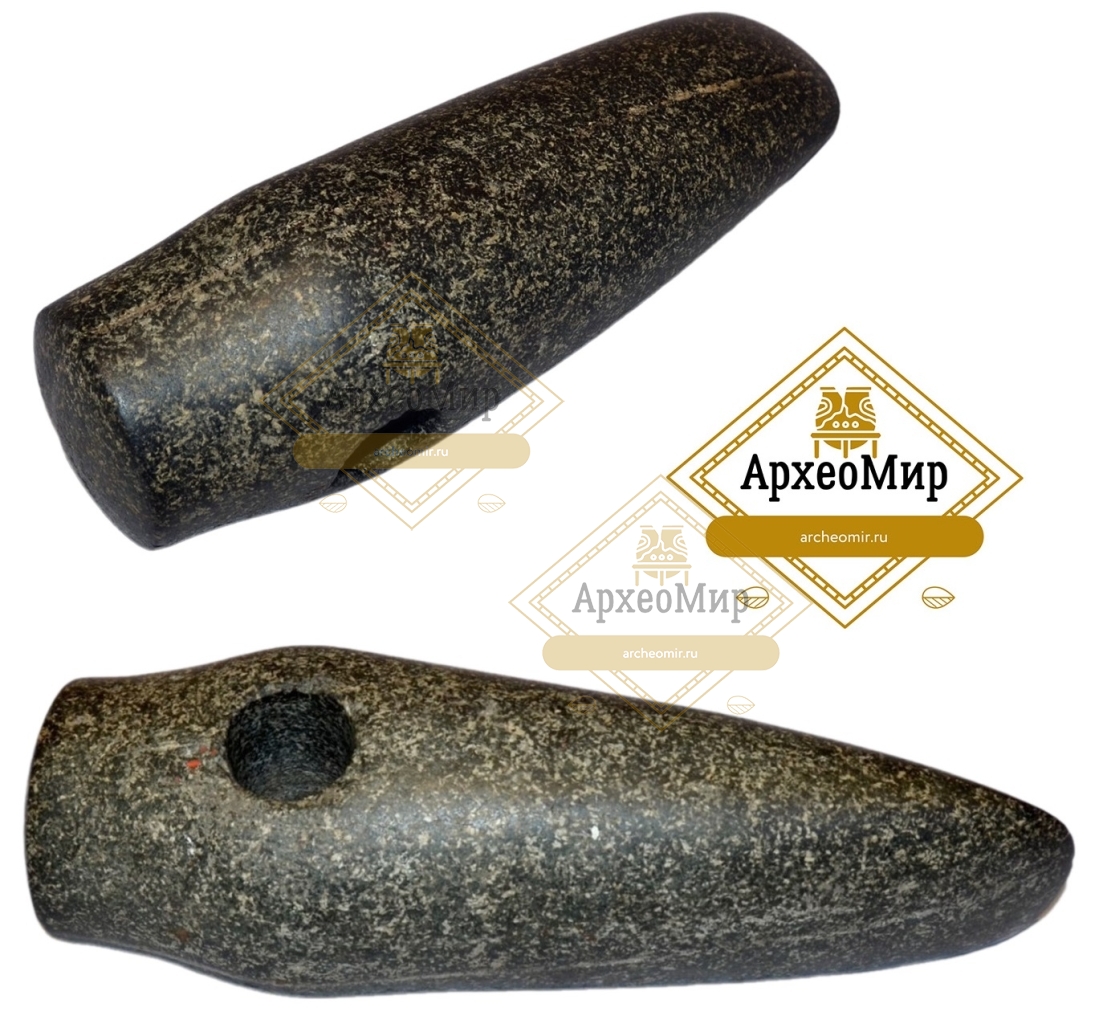 Каменный сверленый клиновидный топор-молот, бронзовый век