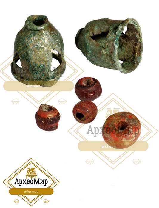 Колокольчик (накосник), краснопастовые бусы, Культура рязано-окских могильников (КРОМ)