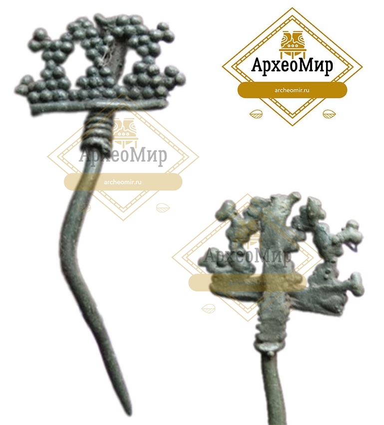 Булавка с ажурным навершием, в виде трех "Бантиков"