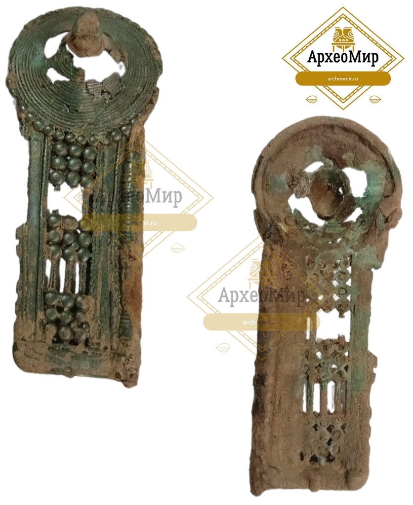 Ажурная биметаллическая булавка с умбоновидным навершием, дьяковская культура