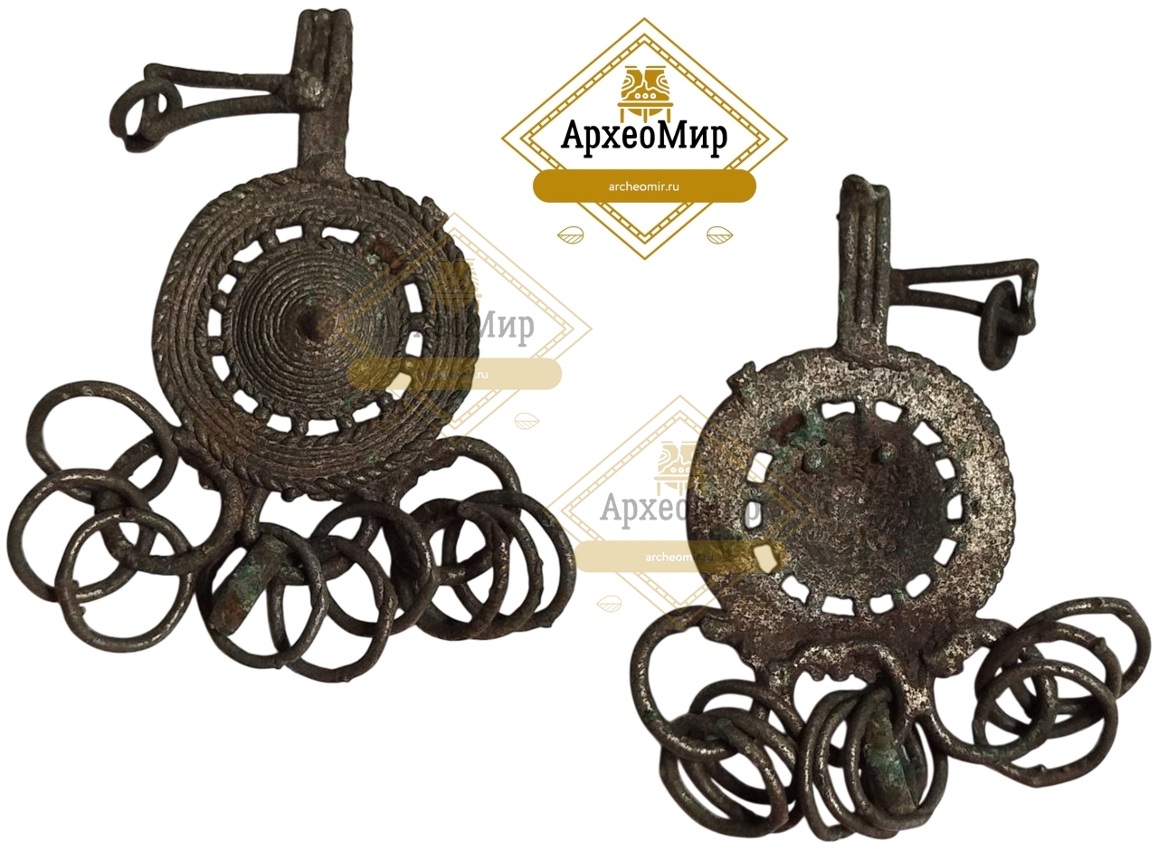 Название: Умбоновидная височная привеска с кольцами, дьяковская культура, ранний железный век, ржв