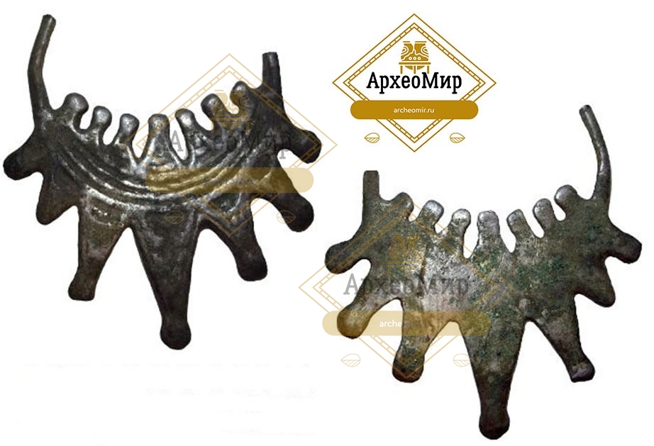 Описание: Височное кольцо с семью зубчиками с каплевидными утолщениями на концах. На щитке орнамент из полуокружностей.