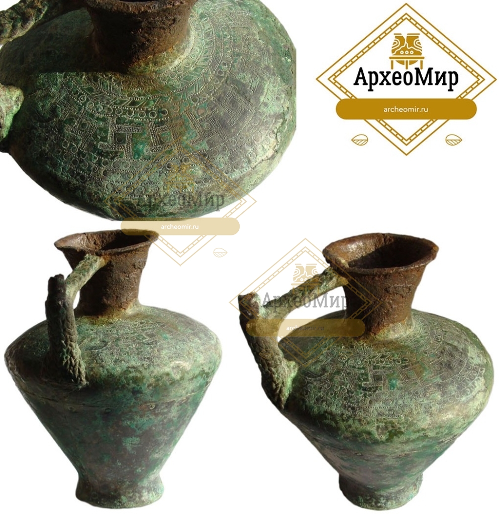 Бронзовый сосуд с орнаментом, бронзовый век.