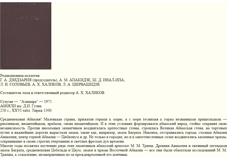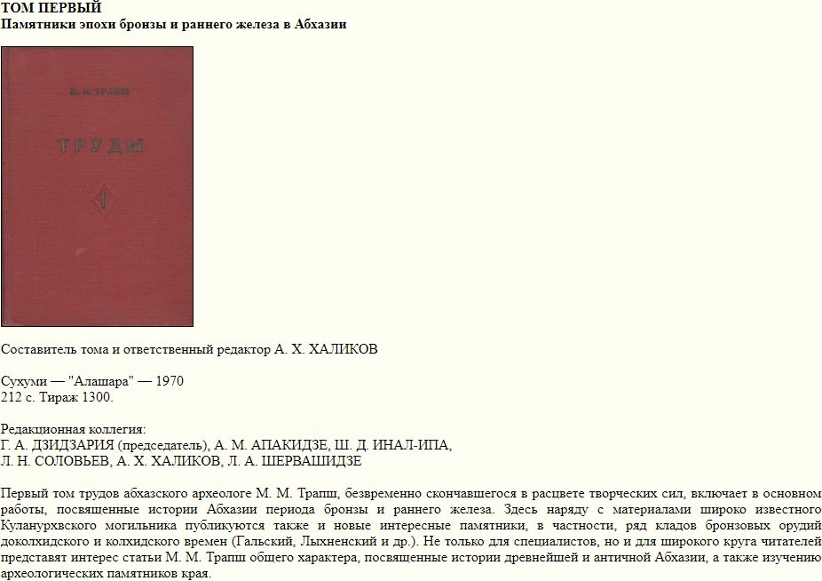 Труды М. М. Трапш в IV томах древняя и средневековая Абхазия